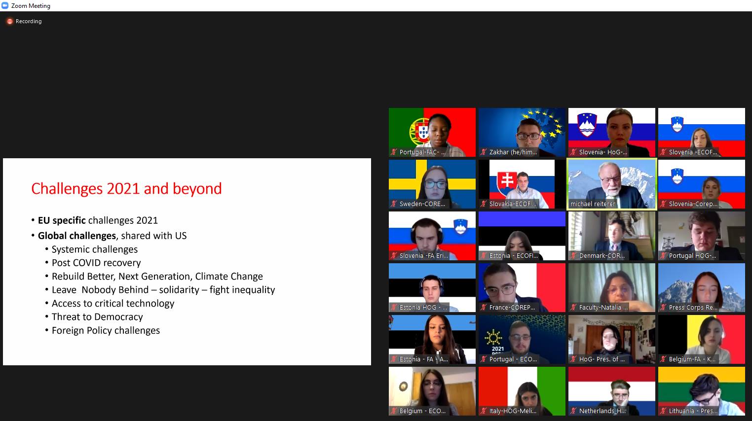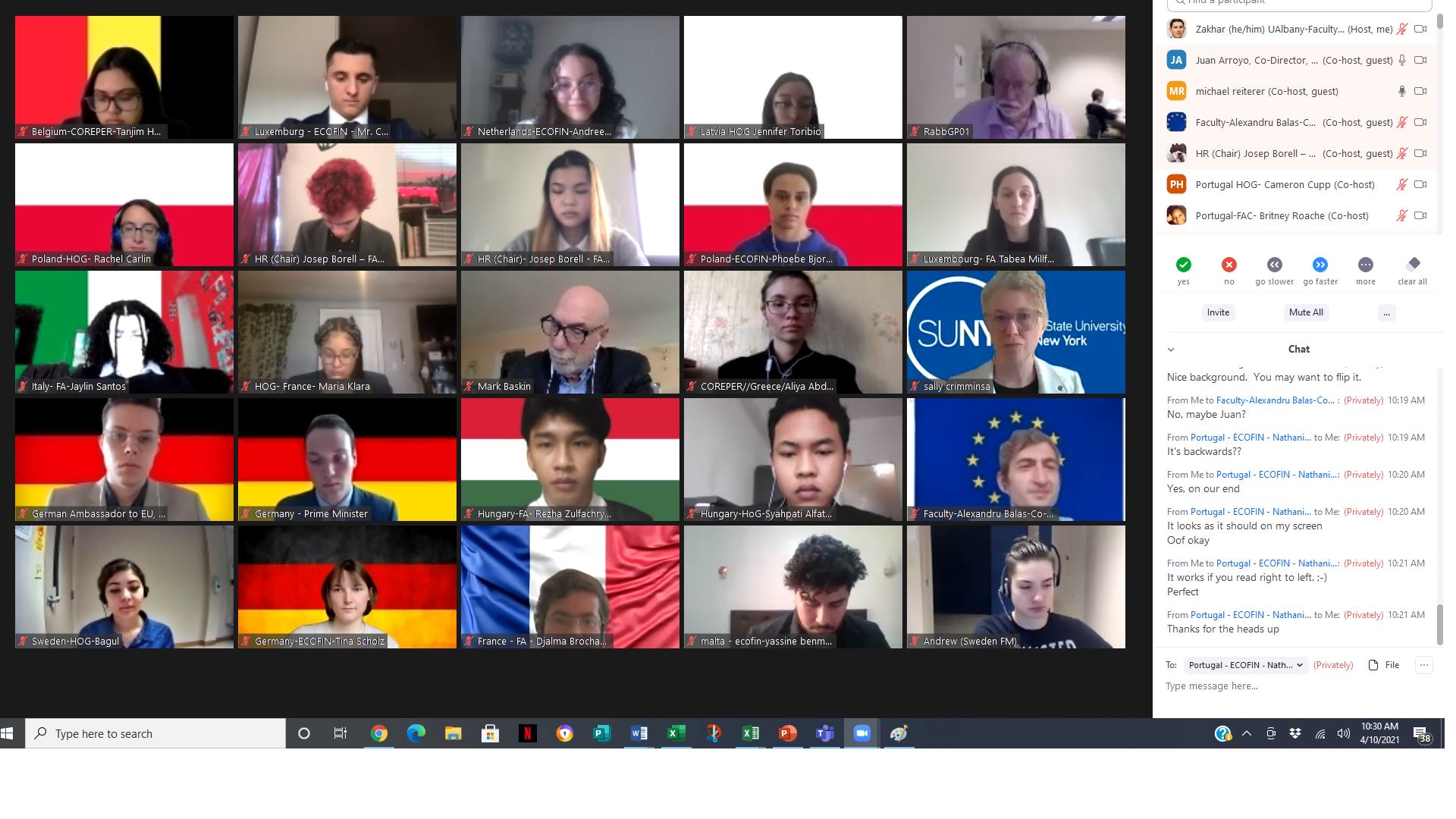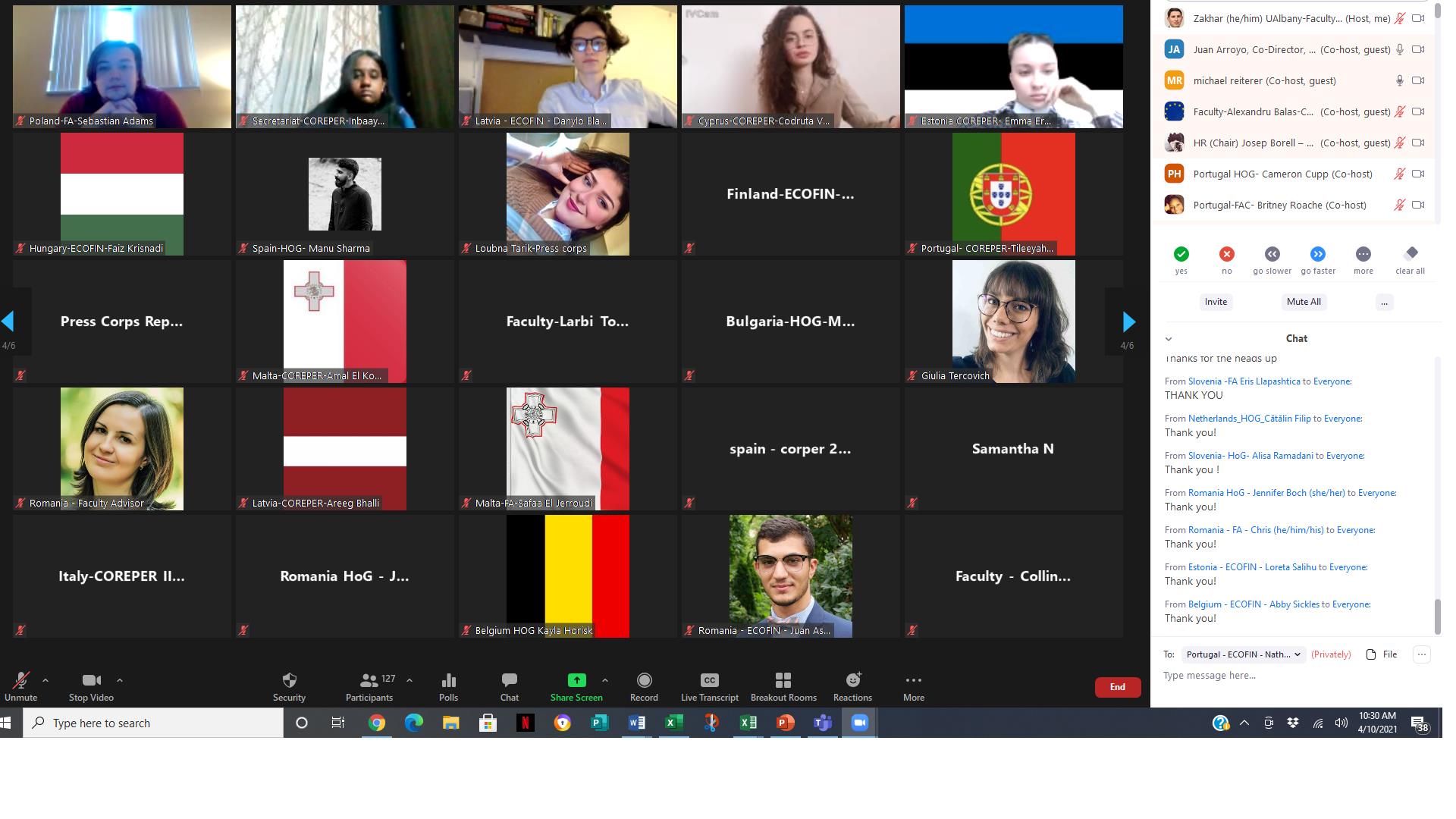 The Global Model European Union is organized in partnership with universities worldwide. The 2021 edition was organized virtually for two weekends in April due to the Covid-19 pandemic and reunited 128 participants.