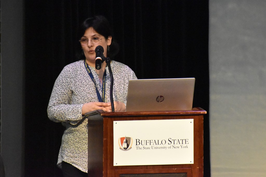 Teaching for Buffalo State students on the new member states in the EU and highlighting the case of Romania and its contribution to EU policies after 15 years of EU membership. Dr Cugleșan also met with the students representing Romania in the SUNY MEU simulation for a final discussion before the start of the simulation.