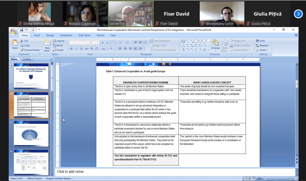 The lecture has exemplified the areas where the Enhanced Cooperation Mechanism has been applied, such as the Patent or Divorce Law or the establishment of the European Public Prosecutor’s Office (EPPO).