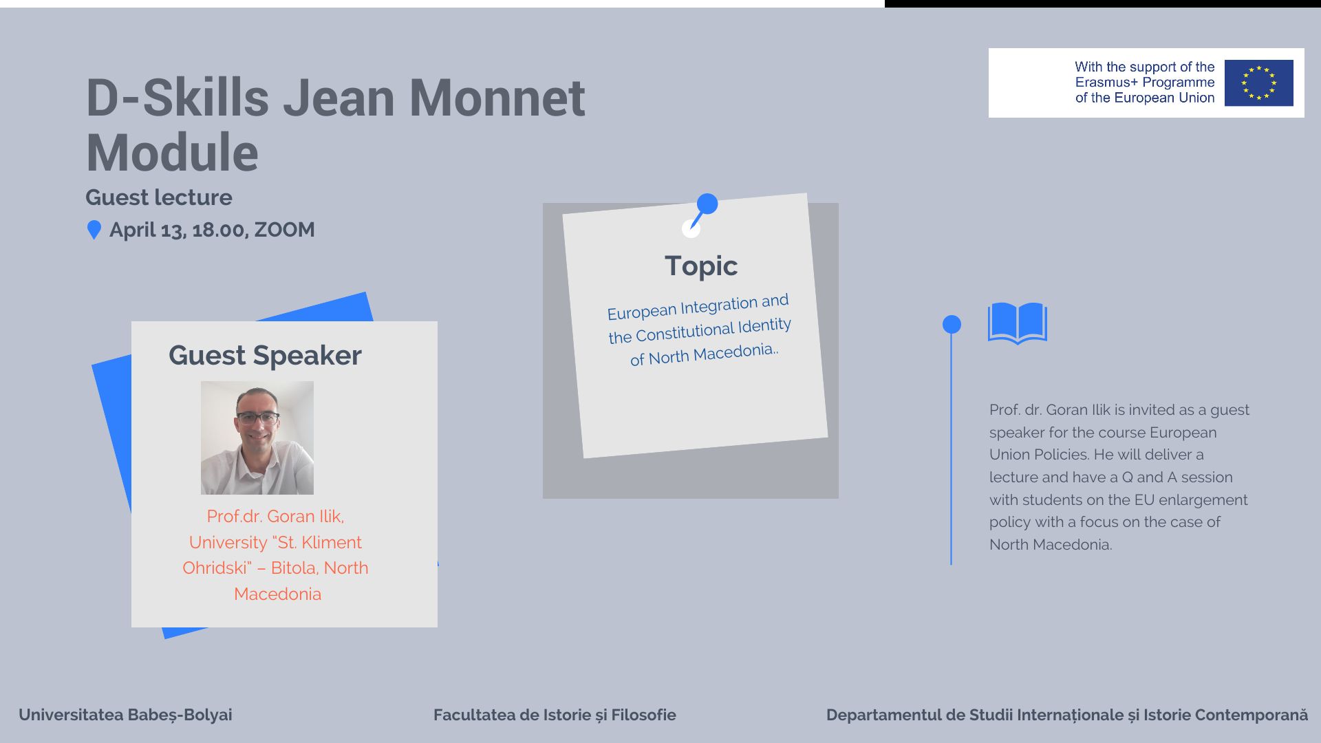 On April 13, 2022, dr. Goran Ilik, University of Bitola, North Macedonia, was the guest lecturer for the course European Union Policies. He delivered a lecture and had a Q and A session with students on the EU enlargement policy, focusing on the case of North Macedonia.
