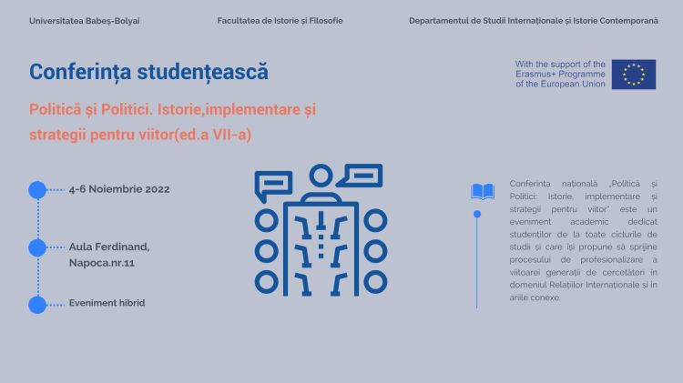 The student conference Politică și Politici is an academic event open to students in the field of International Relations and European Studies. The conference supports the research activities of the students and aims to generate extended discussions on their theoretical and methodological approaches.